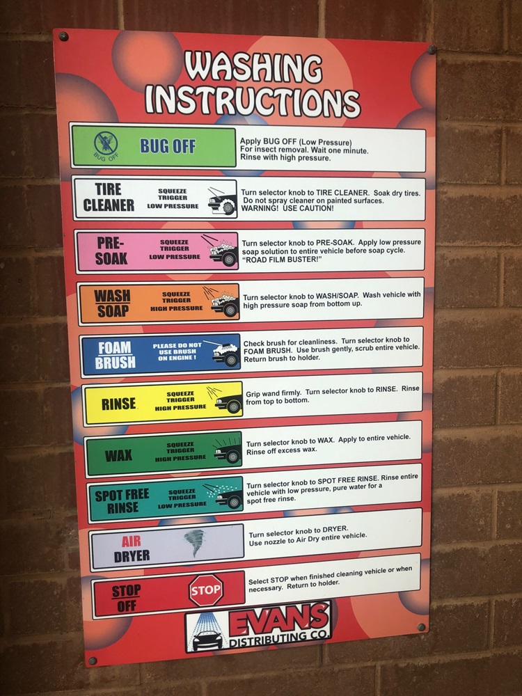 | BASIC | Presoak, Soap, 2 Rinses, Spot Free Rinse, Blowers | $10 | $20 |