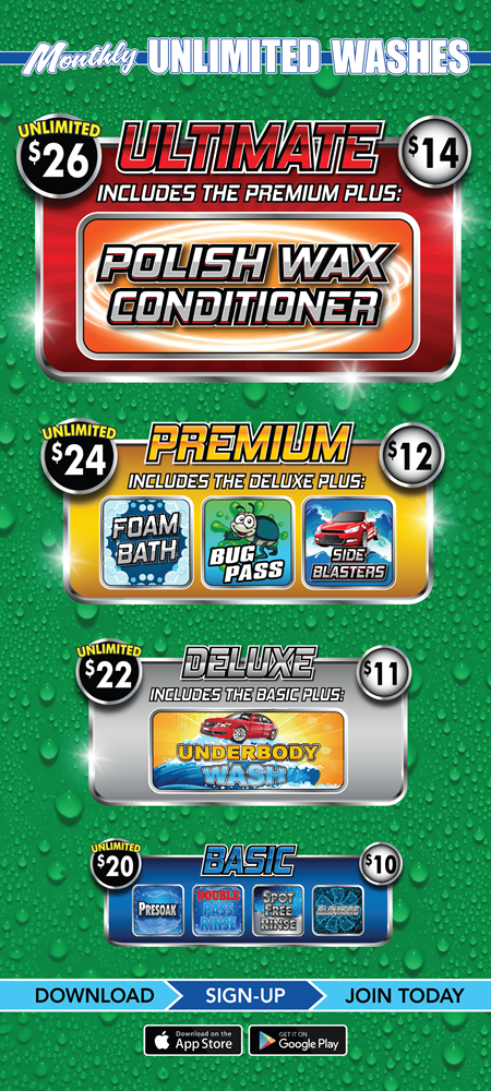 | SIZE | SPECIAL | SINGLE WASH | UNLIMITED WASHES |